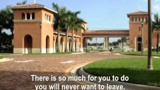 Spanish-style gated community with resort pool, golf cart paths, and social clubs