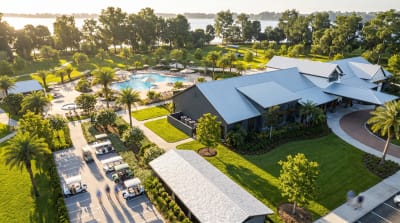 A gated 400-acre private island between two lakes — Joe Lee championship golf, Harris Chain boating, tennis, pickleball, and no age restriction.