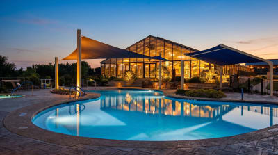Regency at Santa Rita Ranch is an award-winning 55+ active adult community built by Toll Brothers in Liberty Hill, Texas, within the larger Santa Rita Ranch master-planned development. Sales began in 2021 and construction is ongoing, with roughly 1,000 homes planned across three distinct home collections. The Garden Collection offers five floor plans from 1,599 to 2,367+ sq. ft. on 50-foot home sites with 2-3 bedrooms. The Meadow Collection sits on 60-foot home sites with five designs ranging from 2,087 to 2,844+ sq. ft., most with 3-car garages. The Orchard Collection — the largest — offers five designs from 2,693 to 3,568+ sq. ft. on 70-foot home sites with 3-4 bedrooms. A new phase of 100 home sites was announced in January 2025. The heart of the community is The Retreat, a private Regency clubhouse and amenity center that had its grand opening in May 2024 and is reserved exclusively for residents. Inside and outside, residents enjoy a resort-style pool with cabanas, nine pickleball courts, two bocce courts, an event lawn, a game lounge, and a fitness center known as Happy's Wellness Barn. A full-time onsite Lifestyle Director curates year-round social gatherings, events, fitness classes, pickleball leagues, bocce ball, fishing outings, hiking groups, and interest-based clubs. The community took home the Home Builders Association of Greater Austin's Best 55+ Community award in the 2024 MAX Awards. Because Regency is nestled inside the broader Santa Rita Ranch master plan, residents also have access to the master community's amenities: additional resort-style pools, two 18-foot dual waterslides (the Big & Lil' Dip), a fishing lake, a fitness center, a Bark Park, an outdoor amphitheater, and a network of greenspaces and nature trails. A new Paddock amenity center opening in 2026 will add even more options including indoor and outdoor pickleball courts. The master plan has been named Community of the Year four times by the Austin Business Journal and the HBA. The setting is Texas Hill Country — rolling terrain, hill country views, and a small-town feel on the western edge of Williamson County. Liberty Hill is about 15 miles west of Georgetown and roughly 33-35 miles from downtown Austin, putting big-city amenities, medical care, and the airport all within easy reach while residents enjoy quieter, more rural surroundings.