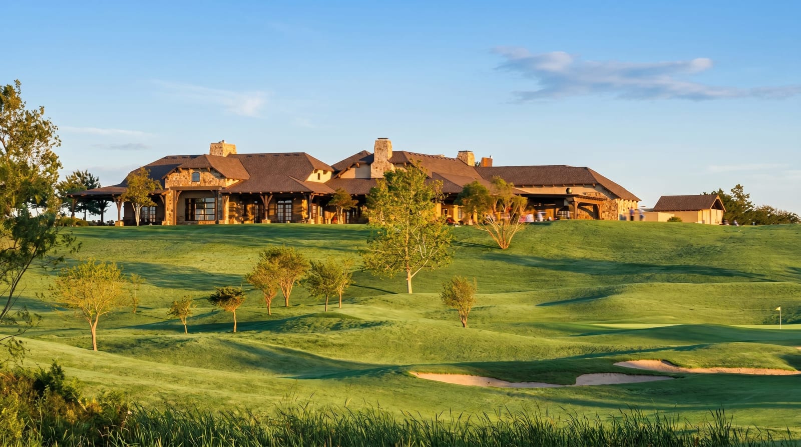 Robson Ranch Texas is the Lone Star flagship of Robson Resort Communities — the Arizona-based family of luxury 55+ active-adult resorts — and has been shaping the North Texas retirement landscape since breaking ground in 2002. Set on rolling prairie 35 miles northwest of the Dallas-Fort Worth metroplex in Denton, the community is planned for 7,200 attached and single-family homes at full build-out, making it one of the largest age-restricted resorts in Texas. Residents describe the vibe as an upscale-but-unpretentious Texas twist on the classic Sunbelt resort: big sky, wide streets, golf-cart culture, and a genuinely packed social calendar. The social heart of the community is the 17,500-square-foot main clubhouse, anchored by a 450-seat grand ballroom with a stage, multipurpose meeting rooms, and a full catering kitchen that keeps holiday parties, tribute bands, and dinner dances rolling year-round. The Pinnacle Fitness Center offers state-of-the-art cardio and strength equipment plus a full slate of classes, while the Cimarron Sports Club — the community's sports hub — houses an indoor lap pool, outdoor resort-style pool and spa, a grandkids pool, massage and steam rooms, a dance/yoga/aerobics studio, 6 lighted tennis courts, 16 dedicated outdoor lighted pickleball courts (plus indoor pickleball), and a gymnasium striped for basketball, pickleball, and volleyball. A separate Creative Arts & Technology Center holds a library, computer lab, woodworking shop, ceramics studio, and arts-and-crafts room, and there's a dog park, fishing lake, community garden, softball field, and miles of walking paths threading through the neighborhoods. Golf is the signature amenity. Wildhorse Golf Club is a 27-hole championship layout designed by Gary Stephenson — the original South and West nines opened with the community and the North nine was added in 2018 — with three rotating 18-hole combinations most days. The on-site Wildhorse Grill serves breakfast and lunch daily on a patio overlooking the fairways, and the course is open to the public, drawing golfers from across DFW. Homes come in more than 25 floor plans spanning roughly 1,400 to 3,600 square feet, from efficient attached villas to larger single-family homes on golf-course and greenbelt lots. The Signature Series introduces three premium luxury floor plans at the top of the range. New construction continues to sell alongside a deep resale market, with new homes starting in the low $400Ks and higher-end custom and golf-front homes pushing close to $1 million. Robson Resort Communities' long-standing design language — tile roofs, Texas-limestone accents, open great rooms, and indoor-outdoor covered patios — runs through every plan. Socially, Robson Ranch punches well above its weight. More than 50 organized clubs and dozens of informal groups run everything from pickleball ladders and line dance to ceramics, veterans' groups, travel, wine, theater, and a resident-produced monthly newspaper, the Robson Ranch Pioneer Press. Location helps too: residents are a quick drive to historic Denton's downtown square (shops, live music, two universities, and a lively restaurant scene), about 30 miles from DFW International Airport, and close enough to Fort Worth's cultural district and Lake Lewisville for day trips. The result is a community that feels self-contained when you want it to and metro-adjacent whenever you don't.