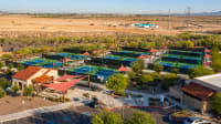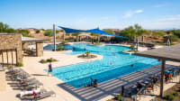 Sun City Festival is Del Webb's flagship 55+ community in Phoenix's far West Valley — ~7,200 planned homes across 3,100 acres of high-desert Buckeye. Local realtors widely call it the best dollar-for-dollar value in the Phoenix 55+ market, with new homes starting in the low $400s and base HOA around $175/month. Amenities include a 27-hole Troon-managed golf course, two rec centers (Sage and Saguaro), a 16-court pickleball complex, softball stadium, woodshop, and clay and glass arts studios. Not gated, golf-cart friendly, with 31+ chartered clubs and a strong dance culture.