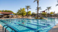 Sun City Festival is Del Webb's fifth and largest Phoenix-area 55+ community — a sprawling 3,100-acre master plan in northern Buckeye, Arizona, roughly 10 miles west of Surprise on the eastern foothills of the White Tank Mountains. At build-out (projected around 2028) it will hold approximately 7,200 single-story homes, making it one of the biggest active-adult developments in the West Valley. Among local realtors it's widely regarded as the best dollar-for-dollar value in the Phoenix 55+ market — new Del Webb homes start in the low $400s and HOA dues are materially lower than comparable communities like Pebble Creek or Victory at Verrado. The community is not gated, but it does have an on-site fire station for medical emergencies. The lifestyle is built around two full-service recreation centers and a separate sports complex. The 31,000-square-foot Sage Recreation Center anchors the older side of the community with a large resort-style pool (grandkids welcome 11 a.m.–2 p.m.), a grand ballroom, a big fitness center, a wood-floor dance studio used for line, Latin, ballroom, country, salsa, and waltz dance, a lap pool with removable lane lines for water aerobics, arts classrooms, a computer center, and the Indigo Grill restaurant and bar overlooking the golf course. The newer 24,000-square-foot Saguaro Recreation Center has a distinctly quieter, spa-like feel — an adults-only resort pool (no one under 19 allowed), a spin room, an indoor walking track (a real asset in Phoenix summers), a brand-new ballroom hosting dances, galas, plays, and tribute bands, and a Wednesday farmer's market (with food trucks and local honey) that moves indoors when summer temperatures climb. A separate multi-million-dollar Arts Building houses three dedicated studios: a woodshop with over $100,000 in professional equipment and full commercial ventilation, a glass-arts classroom with fusion and stained-glass kilns, and a clay club with pottery wheels and kilns — all with modest ~$20/year club fees and daily open access so projects don't have to travel home. Outdoor amenities are extensive. The 27-hole Copper Canyon Golf Club, managed by Troon Golf, winds through scenic desert terrain and is well-kept year-round. Green fees are on the low end for Phoenix-area 55+ communities, though because the course is semi-public and the community is so large (7,200 homes eventually), peak-season tee times can be tight for frequent golfers — something to weigh if you plan to play several times a week. The Wagner Sports Complex houses 16 outdoor pickleball courts with permanent lines and nets (plus an ice machine, refill station, and shaded seating), a dedicated softball stadium, tennis courts, bocce, basketball, sand volleyball, horseshoes, lawn bowling, a putting green, a grandkid-friendly playground, and an outdoor amphitheater. Miles of walking trails thread through the desert landscape — a lively 'parade of walkers' is out on them by 6:45 a.m. most mornings. The community is golf-cart friendly, with residents cruising between rec centers, the golf course, the restaurant, and each other's homes via cart. Homes come from one builder (Del Webb, a PulteGroup brand) with roughly 19 single-story floor plans — Voyage, Haven, Venture, Harmony, Refuge, Odyssey, and others — ranging from about 1,280 to 3,343 square feet, with 2–3 bedrooms, 2–3 baths, and 2–3 car garages. The Skyline series adds low-maintenance options where yard work and exterior landscaping are handled for you. Current new-home pricing starts in the low $400s and runs past $700K depending on size and lot; resale median sits around $444K, with homes trading from the $300s to the $800s. One architectural trade-off: because there's only one builder, streetscapes can feel monotonous — lots of similar brown stucco — though homeowners personalize with landscaping, courtyards, and the occasional third-car garage. Social life is a real standout. The resident-run Festival Community Association publishes a packed calendar of concerts, classes, tournaments, volunteer groups, and club events. The community has 31+ chartered clubs spanning fine arts, ceramics, pottery, glass arts, woodworking, quilting, jewelry, photography, knitting, and sewing; a broad dance scene (Latin, country, waltz, salsa, ballroom, line dance); active sporting clubs for golf, tennis, pickleball, softball, and bocce; RV and camping groups; cooking, wine, beer, and food clubs; a theater group that writes, directs, and costumes its own productions; poker, bunco, and book clubs; plus Caring Neighbors, a volunteer group where residents bring meals, run errands, and handle rides for neighbors recovering from surgery or otherwise in need. Del Webb also runs a VIP guest stay program: prospective buyers can book a furnished villa for a couple of nights, get a golf cart, a dinner certificate for the Indigo Grill, and full access to both rec centers — an unusual 'try before you buy' that out-of-state shoppers love. HOA dues run $105 to $504 per month depending on product type, and cover common grounds, management, escrow reserves, and grounds maintenance. For most standard Del Webb single-family homes the base HOA runs about $175/month — materially lower than Pebble Creek (~$275) or Victory at Verrado (~$250). The community also carries a Town of Buckeye CFD (Community Facilities District) property tax of roughly $3,500–$4,000 per year, plus a one-time $5,000 C.A.R.E. capital contribution at closing. Location is the community's defining trade-off. Sun City Festival sits at the far northern edge of Buckeye, separated from the rest of the metro by 10–15 miles of open desert — peaceful, quiet, and dramatically dark-skied at night, but not convenient for daily errands. Inside the community there's a single gas station, a Subway, and the Indigo Grill at the golf club; everything else requires a drive. Grocery and basic shopping are 15–18 minutes east in Surprise; the larger Prasad