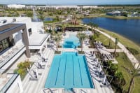 20,000 sq ft clubhouse on its own private amenity island — spa, demo kitchen, two pools, seven pickleball courts, and electric bike-share inside master-planned Tradition.